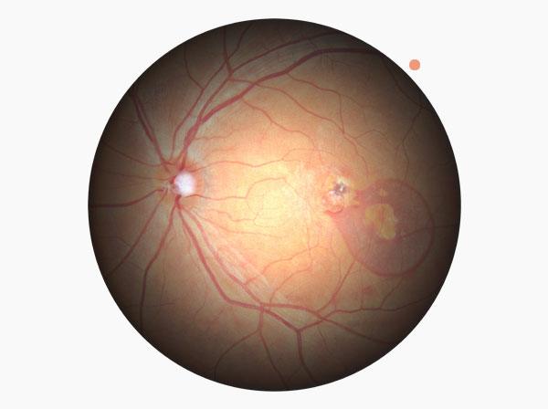 Al ajustar los valores de BR central y gamma, se puede ajustar con precisión el brillo y el color de la imagen del fondo de ojo. Esto permite observar con mayor claridad las zonas específicas donde se encuentran las lesiones.